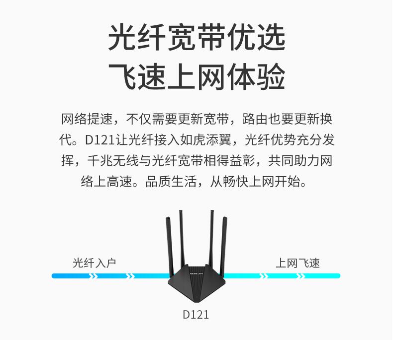水星無線路由器家用高速wifi 5G雙頻千兆速率路由器穿墻王大功率增強 百兆端口宿舍學生寢室D121